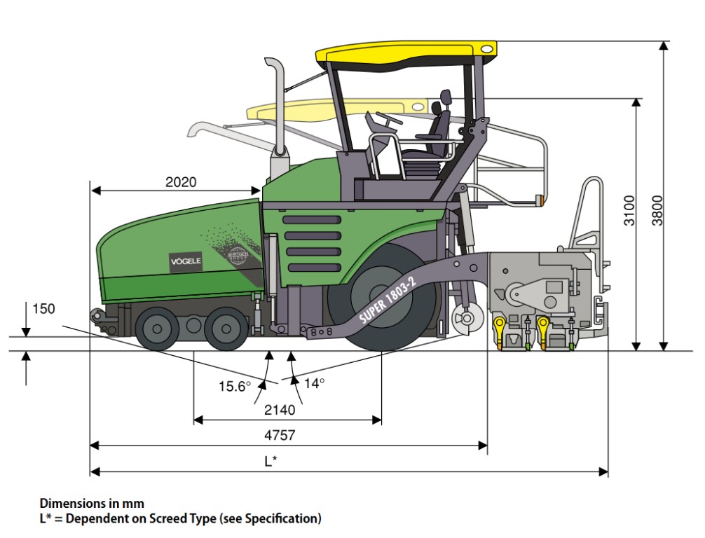 Despite it's large capability, the 1803-2 has a turning circle of only 6.5m, making it manoeuvrable round tighter corners, and electronic traction management guarantees optimum traction. The perfect spreading of the mix ensures that there is always a good head of material in front of the screed in every paving situation.